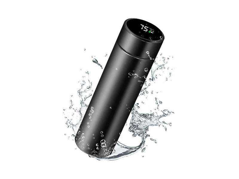 Flacon: 500ml insulated 304 stainless cup with touch-LED temperature display and leakproof design, in Black. The smart display helps avoid scalds and optimizes sipping temperature.
