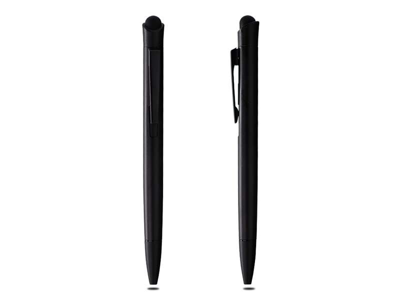 Stylet: Metal body ballpoint with built-in stylus for fast device navigation; durable and smooth, in Black.