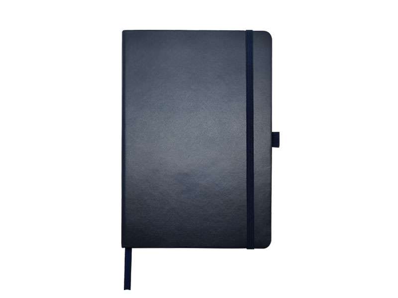Inexmatt: A5 notebook with soft-touch cover, pen loop, ribbon, and elastic, in Blue.