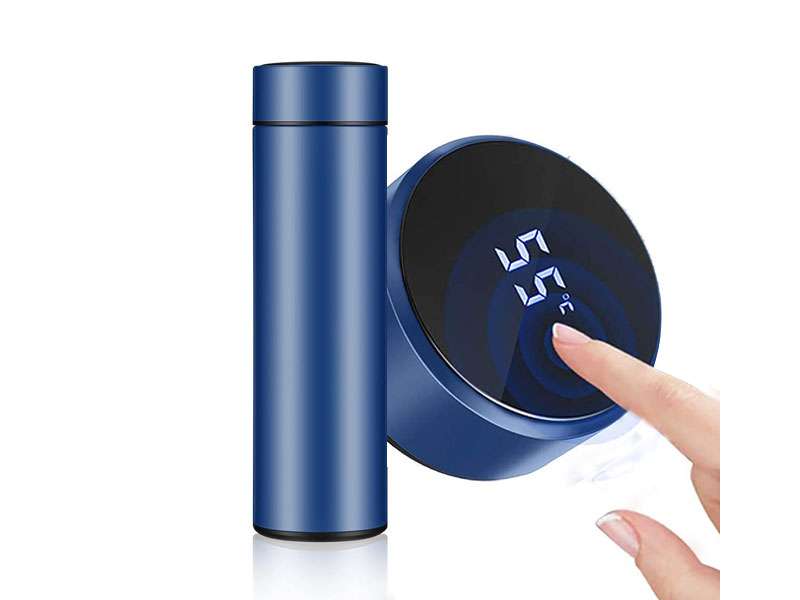 Flacon: 500ml smart insulated cup with touch-LED temperature display; 304 food-grade stainless, in Blue. Leakproof lid and robust build make it dependable from desk to commute.