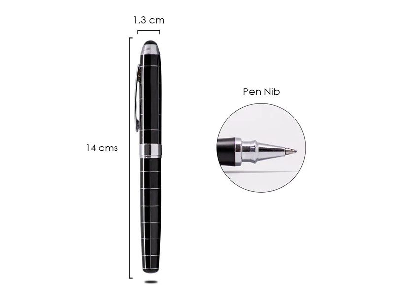 Exude elegance with this black lacquered roller pen with silver grid design and silver trimmings. With a narrow body for better grip, it is the ideal companion for boardroom meetings, and very pleasing to the eye.