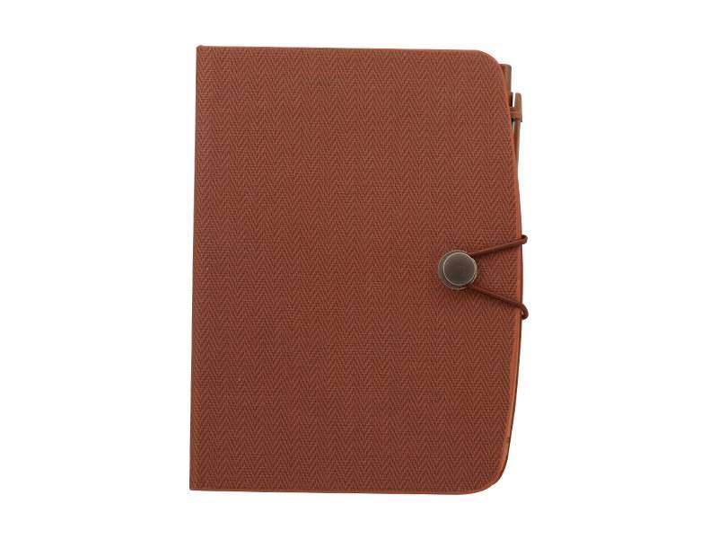 Eco friendly A6 leatherette memo pad with a matching colour pen strapped to the pad through a nylon loop. It is an ideal economical corporate gift, promotional giveaways/ event gift to clients.