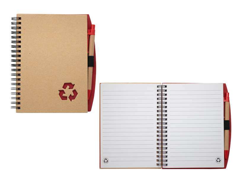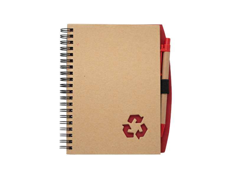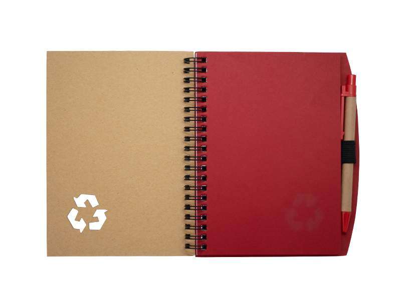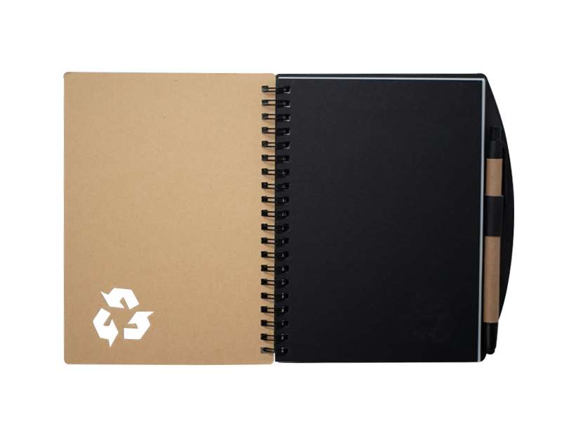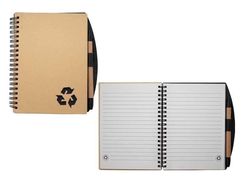 A5 size Eco-friendly spiral binded notebook with a hard cover and a matching coloured pen