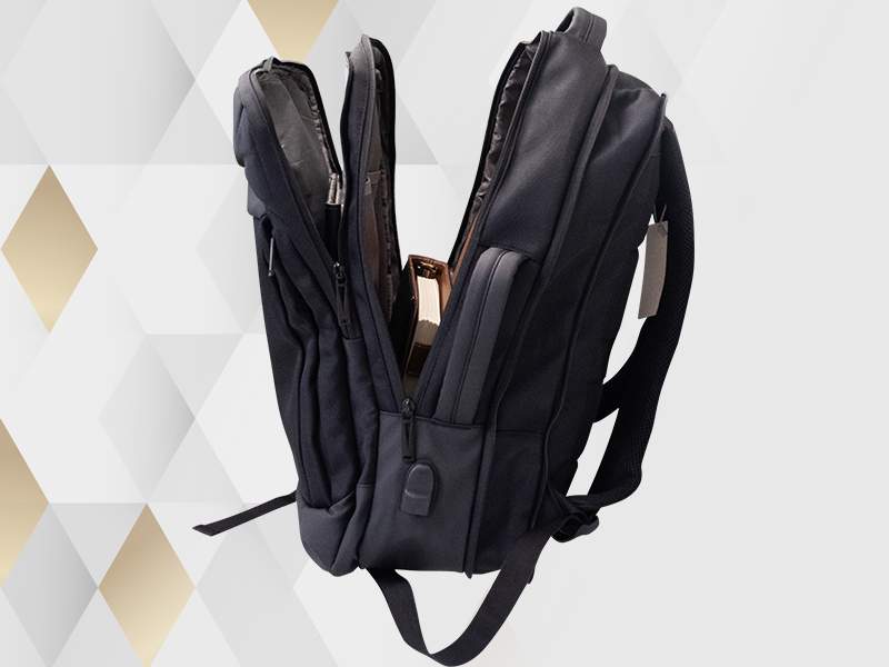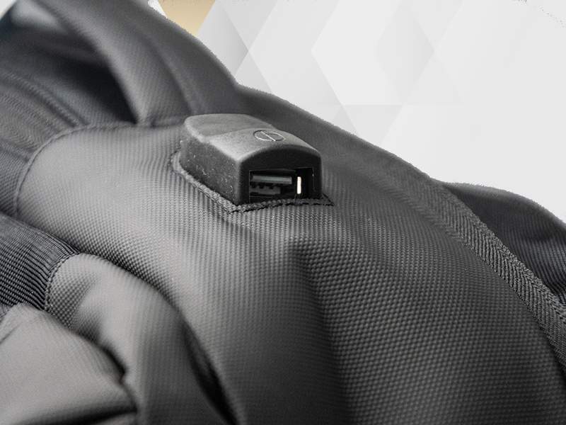 USB outlet to charge your phone from a source inside the backpack (power bank not included).