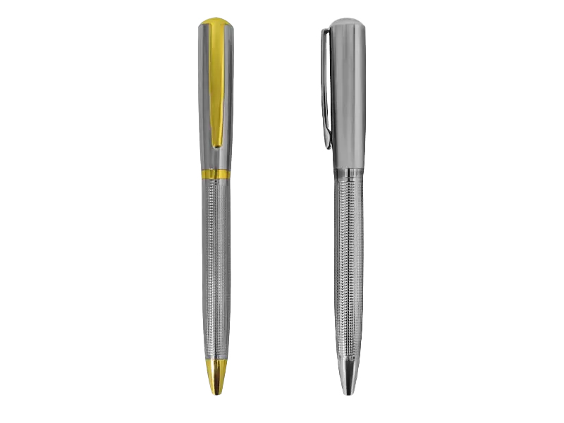 Experience simplicity and reliability with Griden, a twist-action ballpoint pen that stands out with its elegant design. Crafted from a shiny silver etched body with a golden tapered nose and clip, Griden offers a classic touch to your writing experience. The unique design ensures a comfortable grip, making it ideal for prolonged writing sessions. As the largest wholesale pen supplier in the UAE, customize Griden with your company logo for a memorable and sophisticated promotional giveaway.