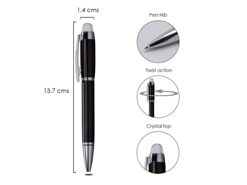 Steel nibbed ballpoint metal pen with just the right thickness for the perfect grip boasts a marble dome, completing this elegant corporate gift. This smooth flowing, sleek finish pen makes even your daily notes look like crafty penmanship.