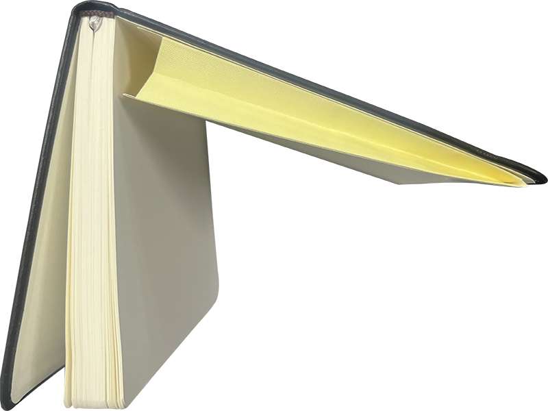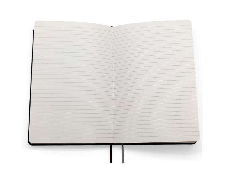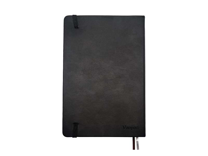 Premium A5 notebook with double ribbon bookmarks.
