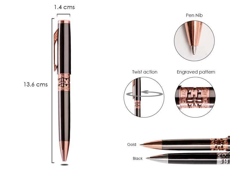 Allow your corporate gifting experience to be luxurious and noteworthy with our classy black lacquer twist-action ballpoint pen complete with spotless chrome intricate detailing.